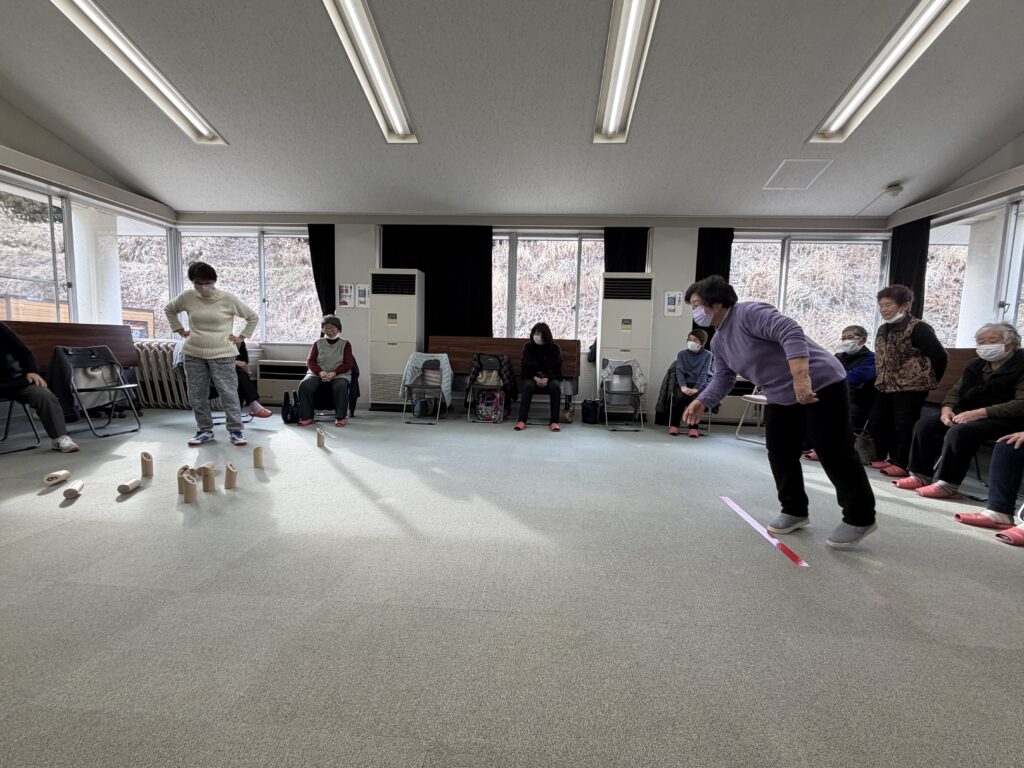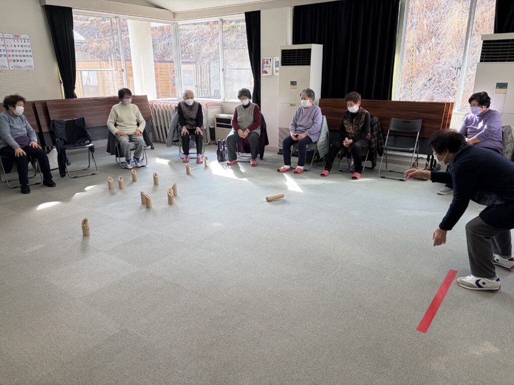 2月のすこやかサロンは、初挑戦の「モルック」を行いました。