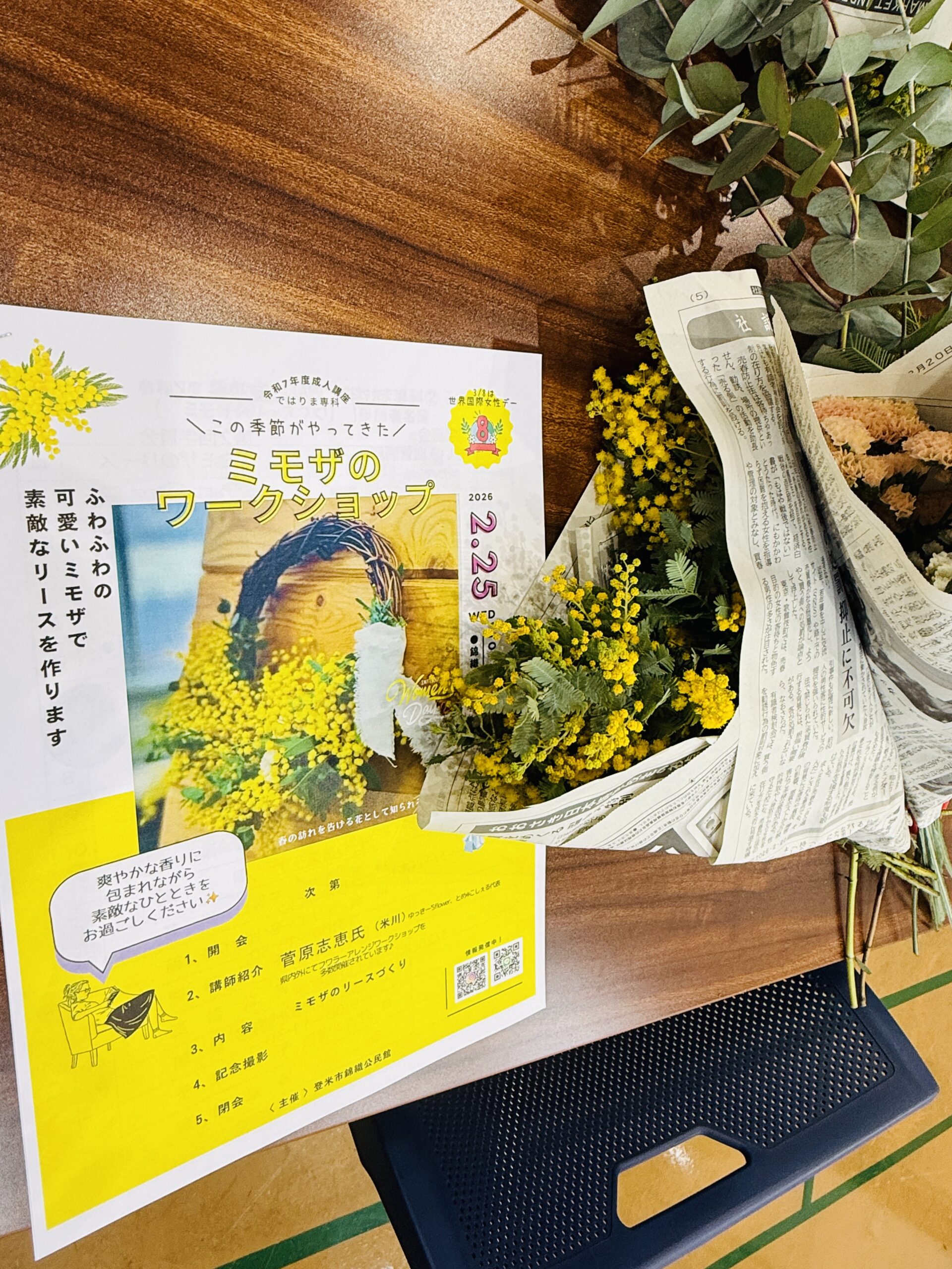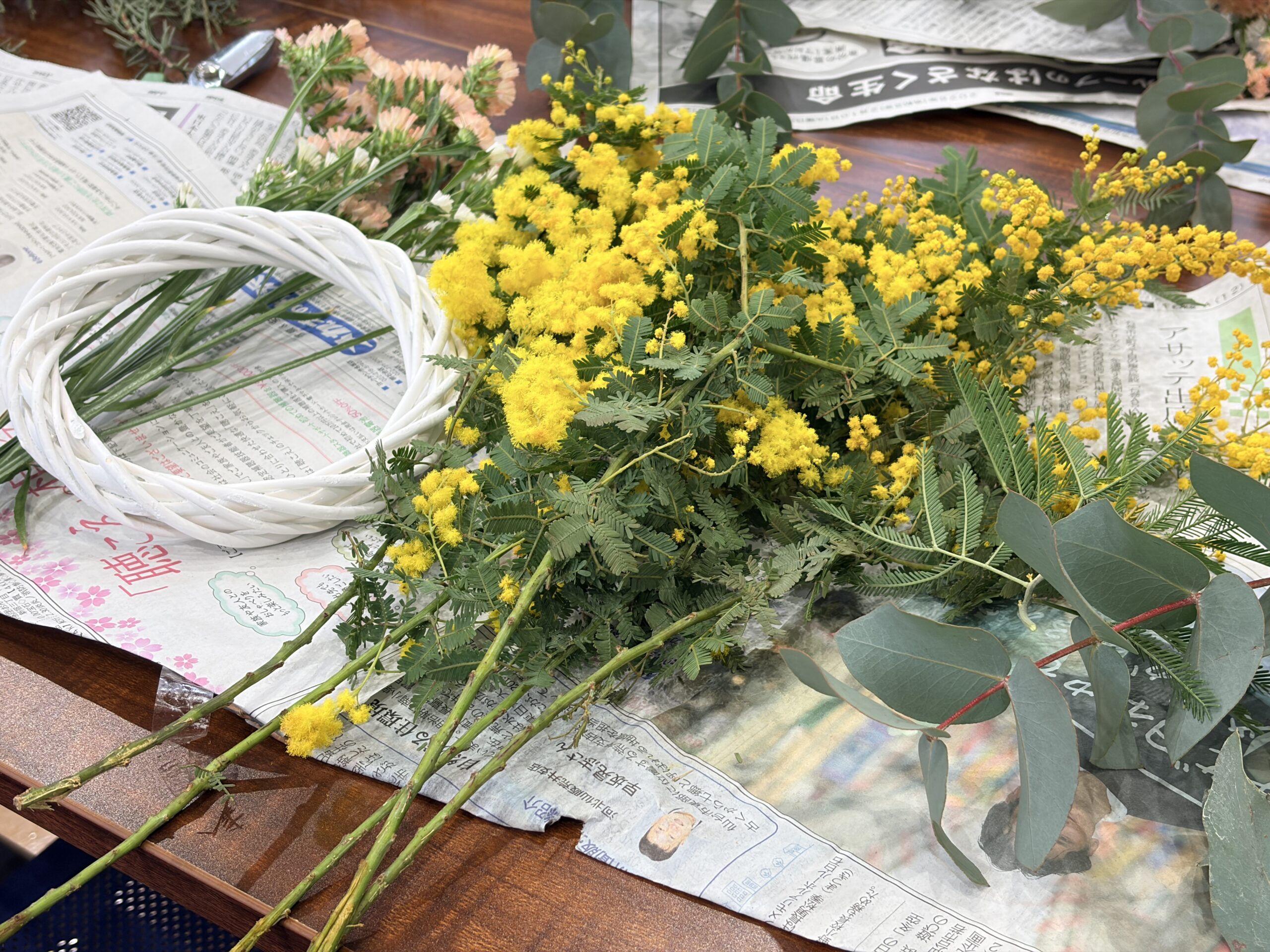 2年ぶりに”フサフサの可愛い【ミモザ】を使ったリースづくり”を行いました(*^^*)