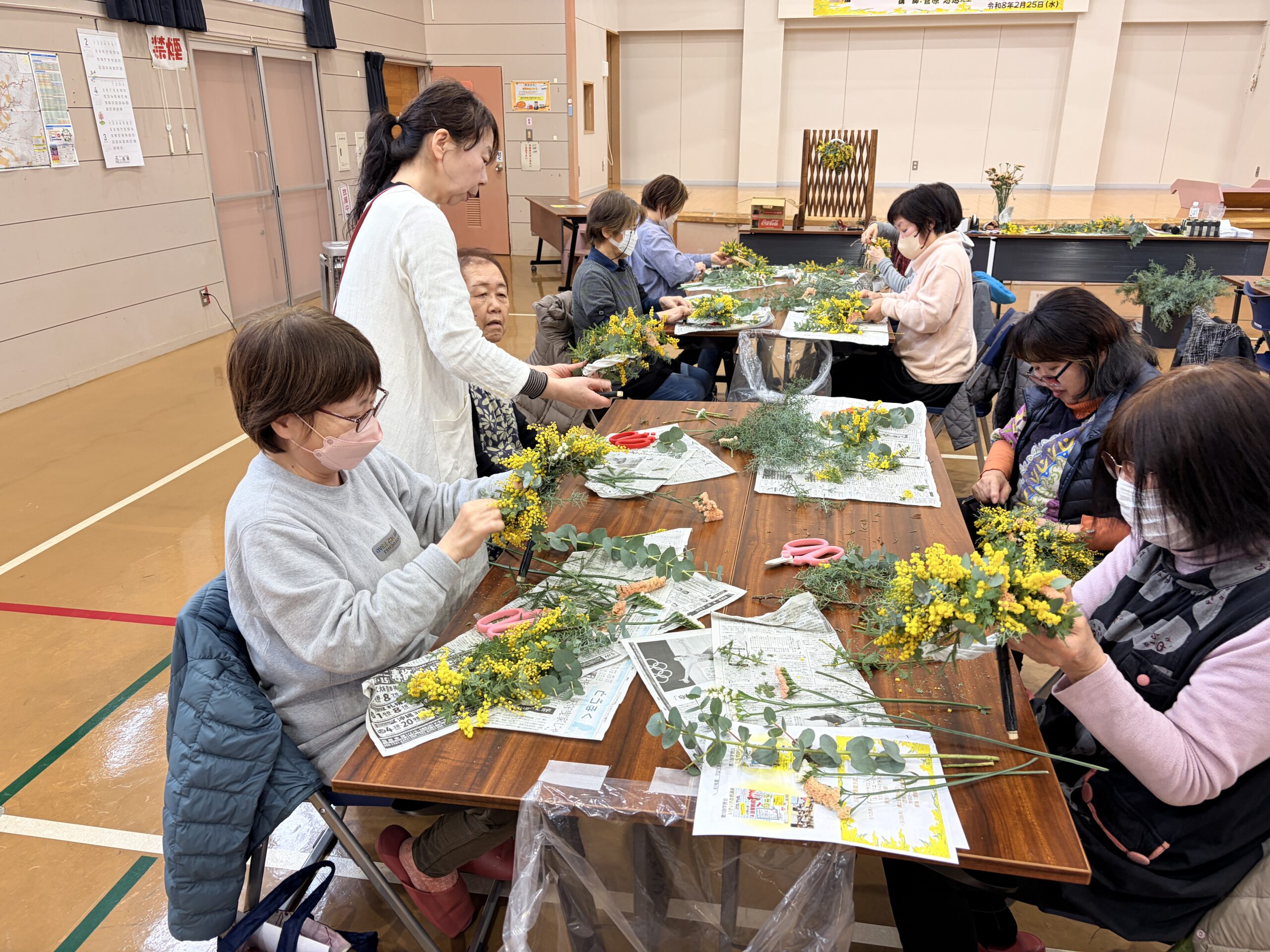 フレッシュな花材の香りに包まれながら、和気あいあいと作業をすすめ