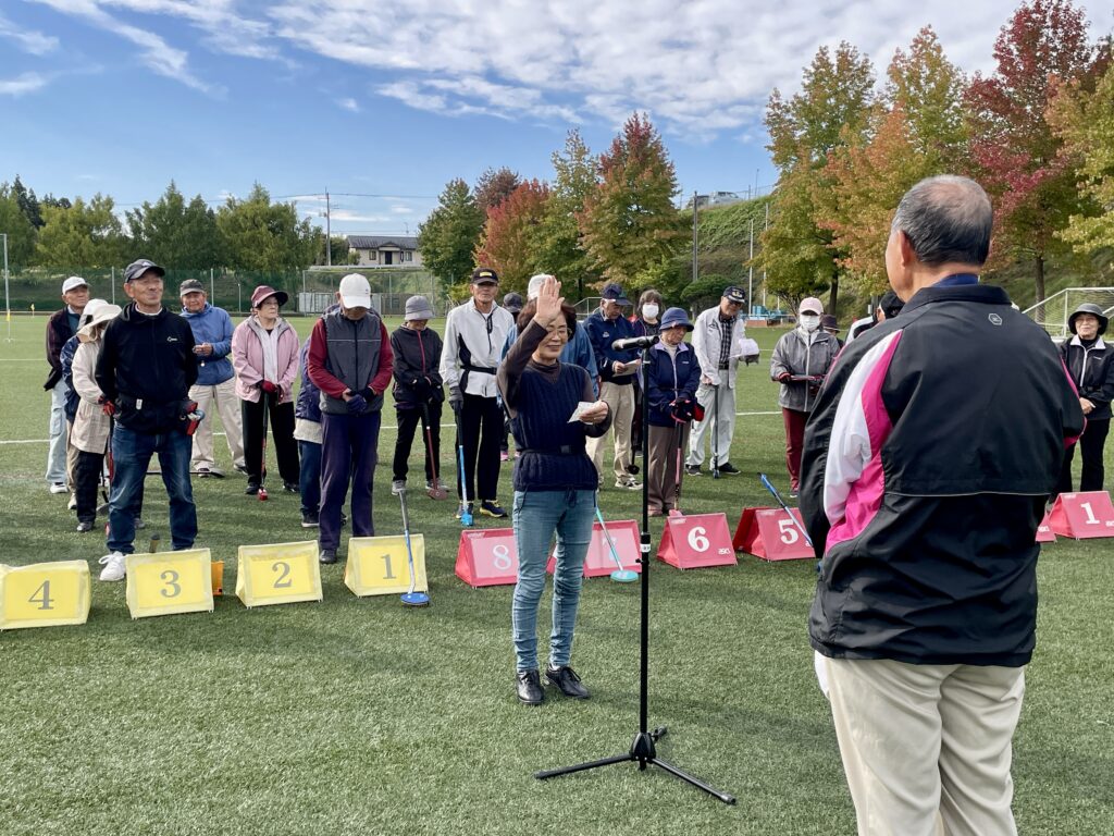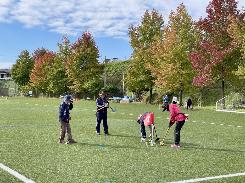 グラウンドゴルフ初心者の方はベテラン勢に優しく教えてもらいながら和やかに交流されていました。