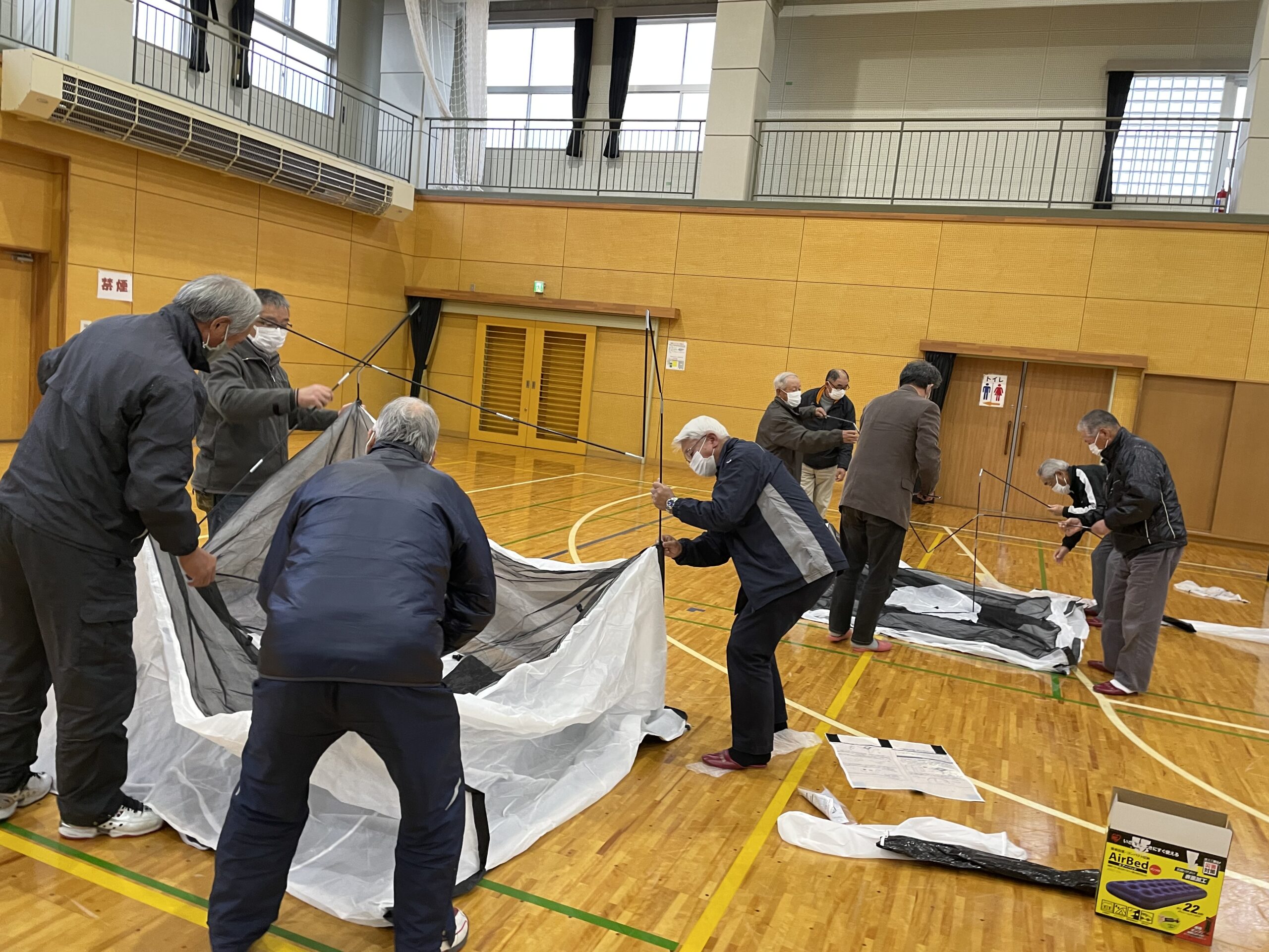 第1部には講師の方より講話をいただき、第2部では昨年設置された防災倉庫にある”テント・エアベット”を実際に組み立て体験をしました!